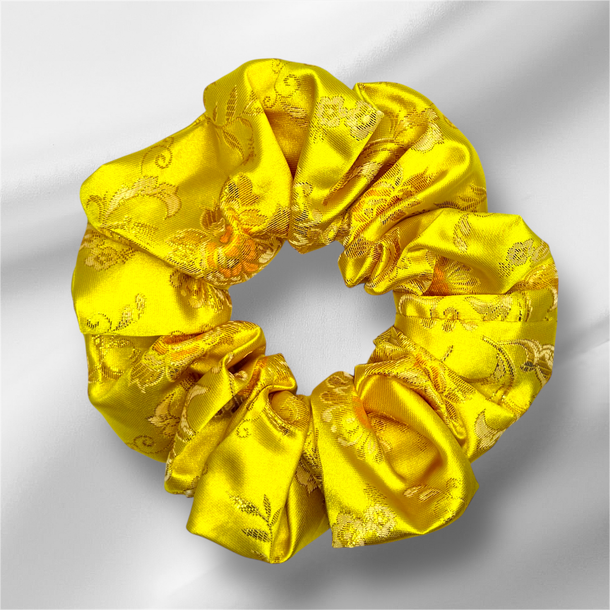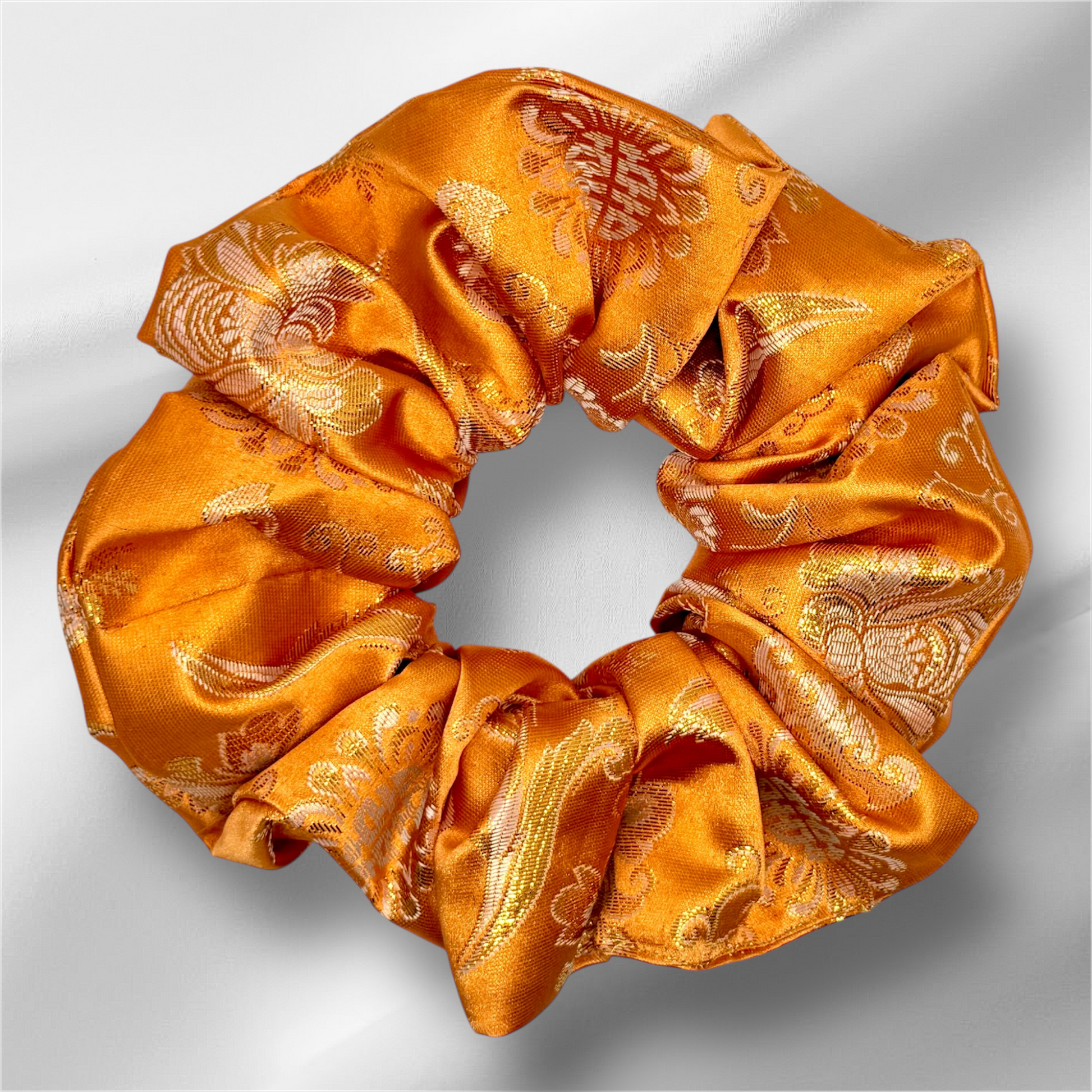 The fabric has a light crisp texture with a subtle shine, giving the scrunchie its bold volume and unique charm. It instantly adds character to any hairstyle, whether you are dressing up casually or going for something more special.